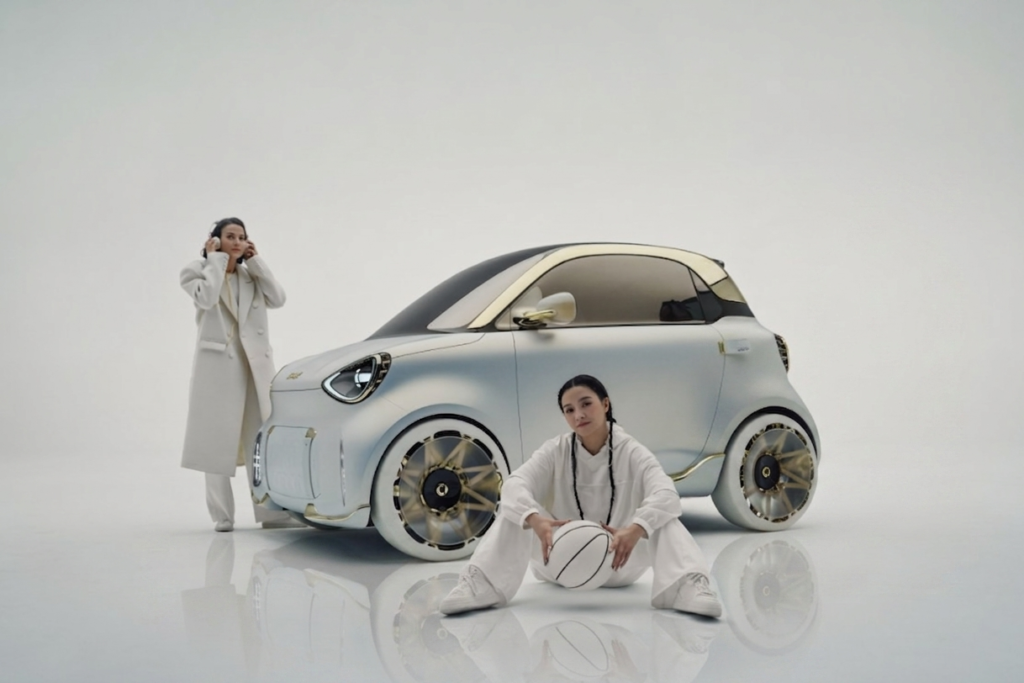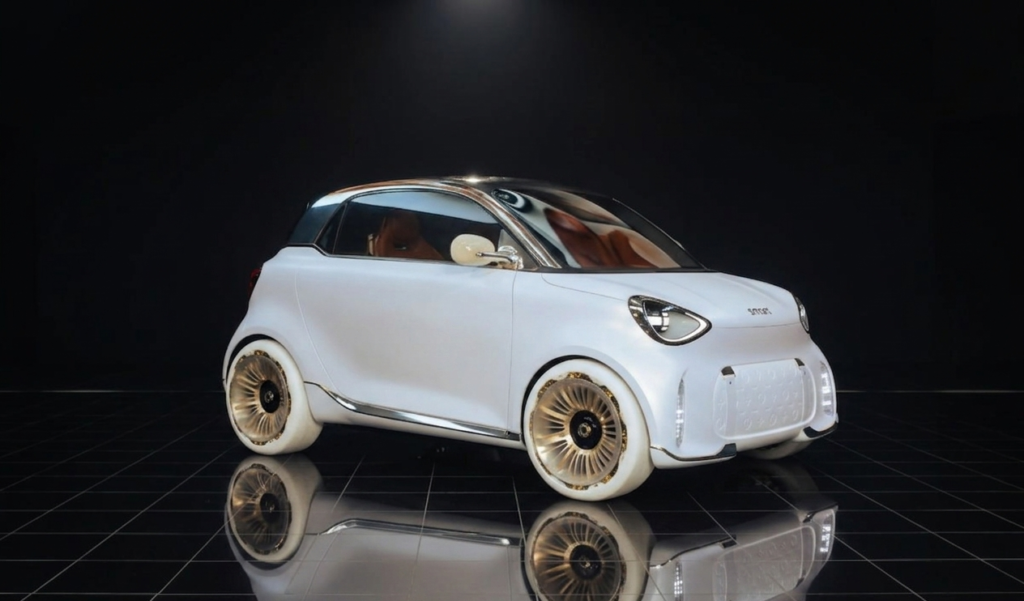 The design has some extremely weird touches that might not make it to the final version. It boasts LED headlights that seem aggressive and daytime running lights that actually spell out “#2.” Smart designed the grille look like a piece of luxury baggage, and instead of standard metal door handles, the concept employs leather straps. The roof has a bright gold finish that helps it stand out in a crowd.